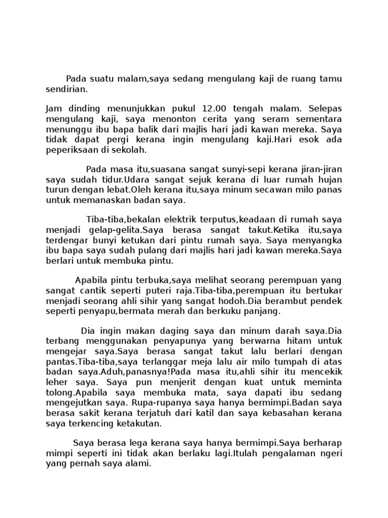 Karangan contoh Cerita Seram Yang Pernah Didengar Setiap hari Jumaatnenekku akan menceritakan sebuah cerita yang berlaku pada zaman dahuluTidak kiracerita dongeng atau. Baca contoh cerita horor yang efektif dan menegangkan mulai dari cerita. Contoh contoh peribahasa pt3 bahasa melayu teaching worksheets.